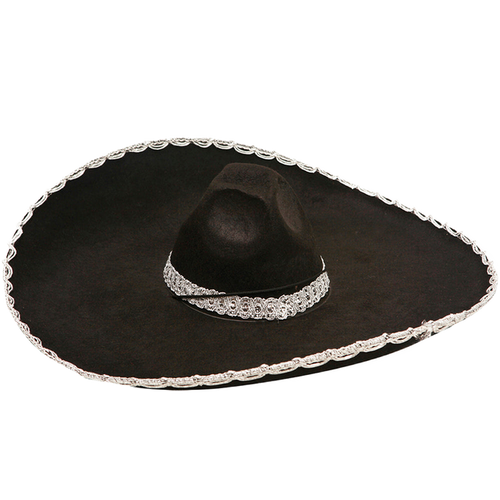 Kids Mexican Mariachi Black and Silver Sombrero Hat
