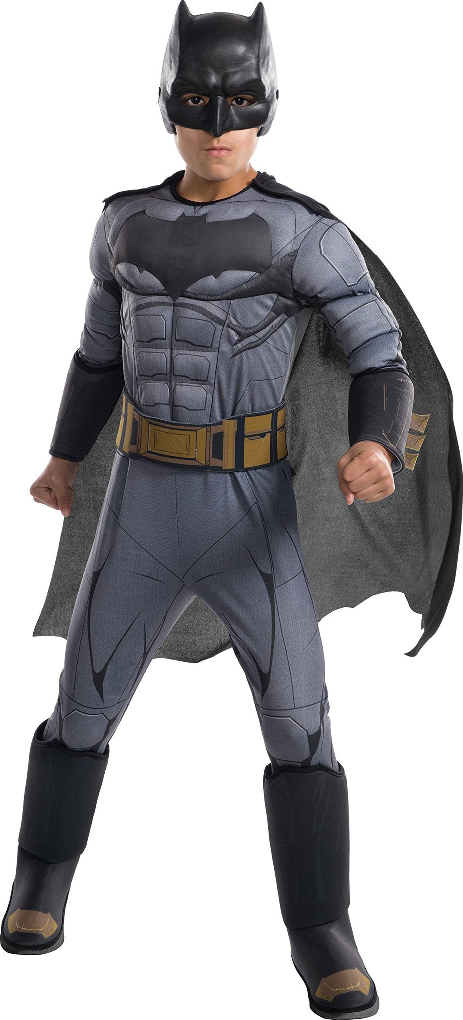 Gear up for action as Gotham City's greatest hero with our Boys DC Comics Deluxe Batman Costume. This costume includes a detailed black and gray jumpsuit with muscle padding and the iconic Batman logo on the chest and attached gauntlets and boot tops. A printed utility belt, flowing black cape, a mask with Batman's signature pointed ears to complete the look. Pair it with accessories like Batman's Batarang or grappling hook for an extra layer of excitement and create a truly unforgettable look.