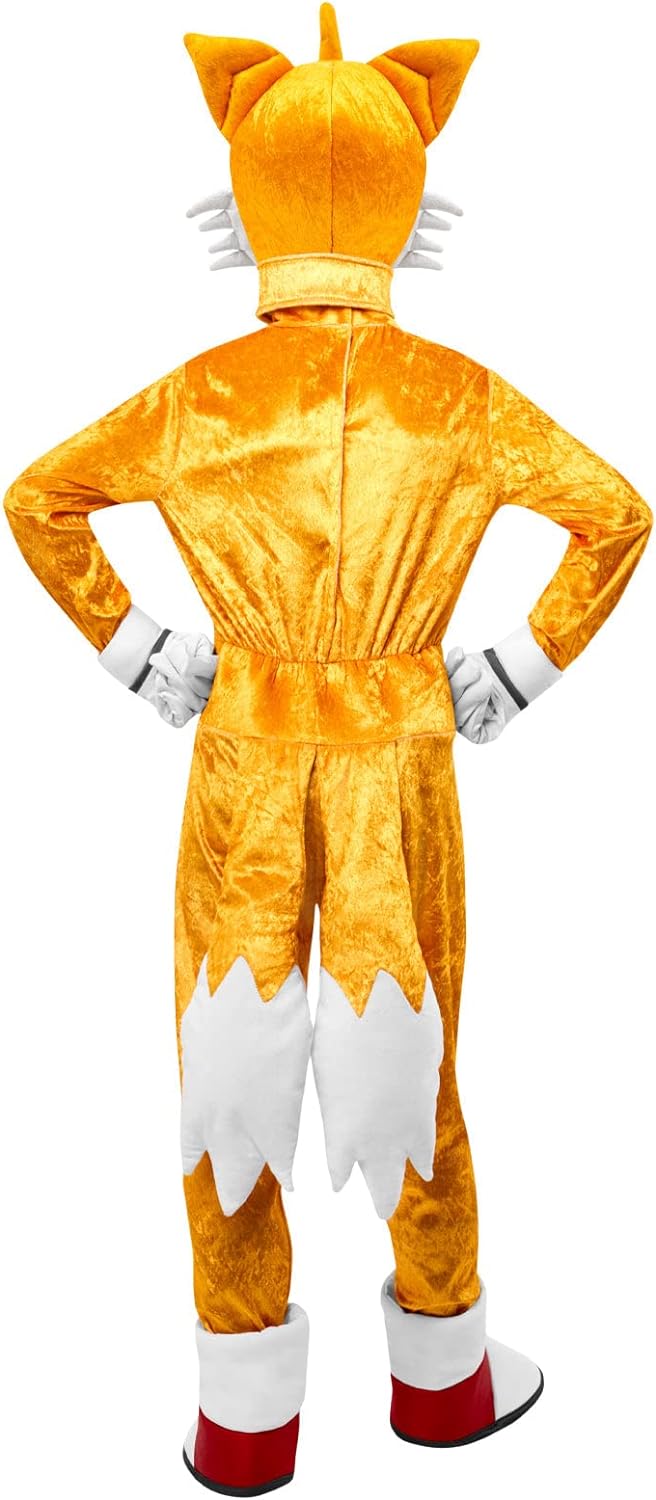 Introducing the ultimate costume for young Sonic the Hedgehog fans: the Boys Sonic the Hedgehog Deluxe Tails Costume. Your child will love embodying Tails, Sonic's trusty sidekick, complete costume with his two tails. Pair up with Sonic for a Fly into fun and adventure with Sonic and his trusty sidekick Tails!Â