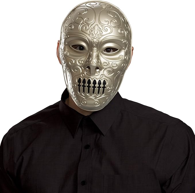 Prepare to join the ranks of the Dark Lord’s most feared servants with the Harry Potter Death Eater Accessory Kit. This isn’t just a costume accessory; it’s your initiation into the world of dark wizards and sinister spells! Conceal your identity with the vacuform plastic mask, featuring a metallic design that’s as chilling as the breath of a Dementor. Prove your allegiance to He-Who-Must-Not-Be-Named with the temporary tattoo of the Dark Mark. It’s like a VIP pass to every Death Eater gathering.
