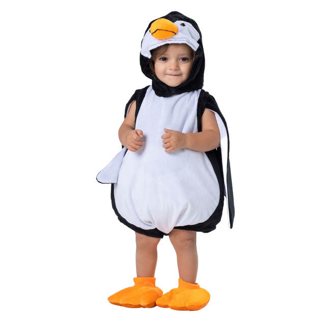 In this costume, your little one the cutest waddling penguin at any party! The soft and comfortable onesie features attached black and white flipper wings at the shoulders, allowing your little one to waddle around just like a real penguin. The hood, which fastens under the chin, has a soft-sculpted beak on top, completing the adorable penguin look. Imagine your baby waddling through a snowy landscape, channeling their inner Pingu or Happy Feet character! Whether it’s their first Halloween, a themed party, or just for fun, your little penguin will steal hearts and bring joy to everyone around. Let the cuteness slide in!Â