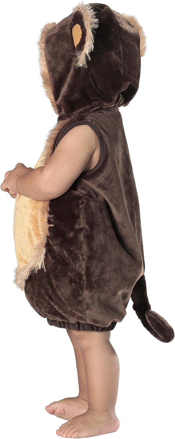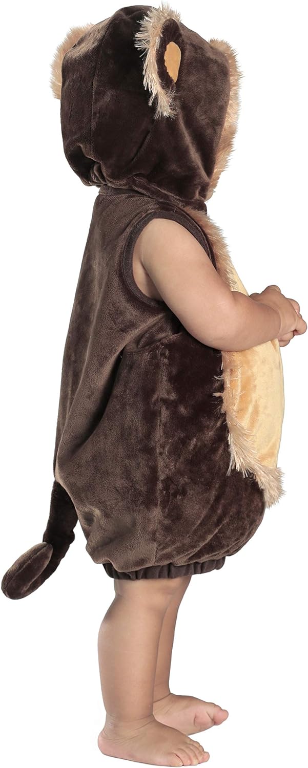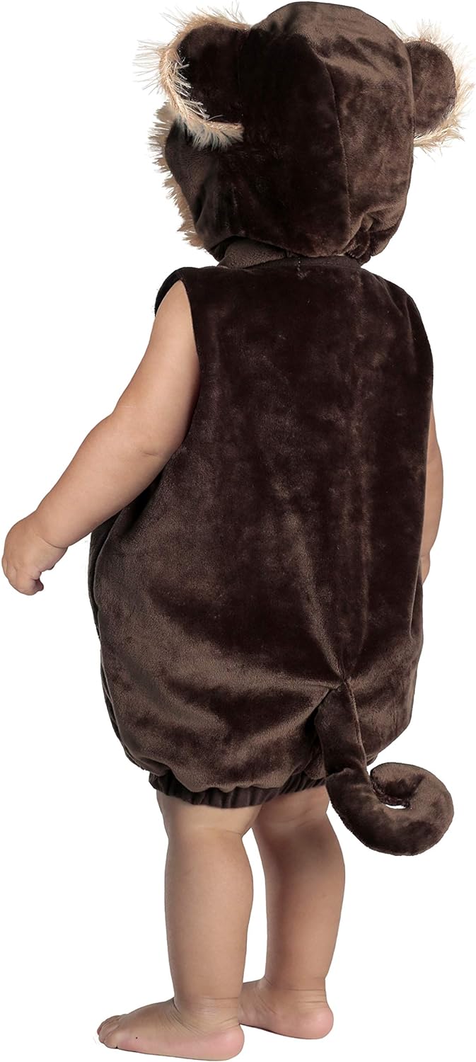 - Includes brown romper with frayed detailing for a fur effect and a curly tail, and a monkey headpiece