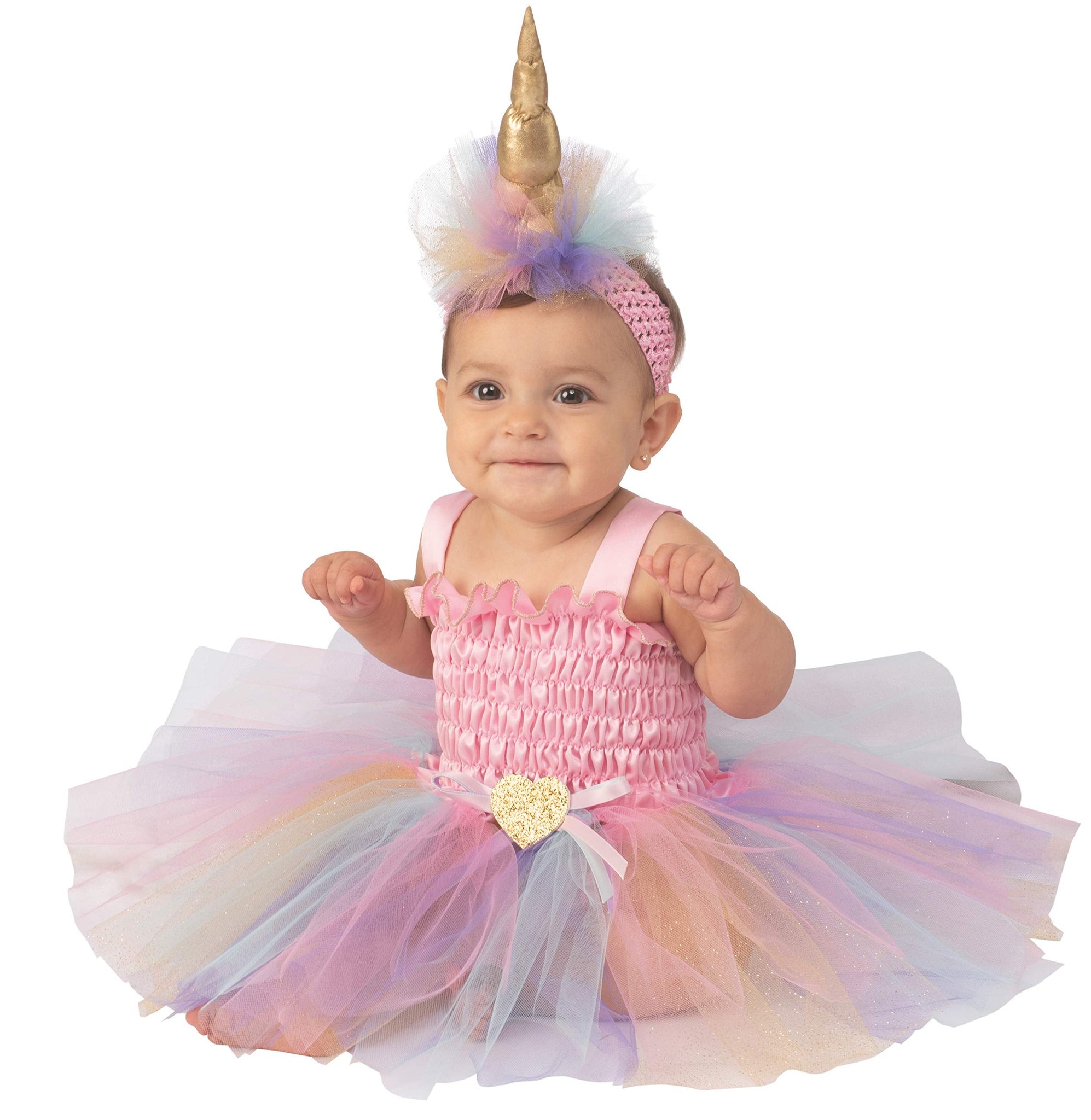 - Includes pull on pink ribbon strap rainbow pastel tutu dress with gathered top, diaper cover, and pink headband with golden unicorn horn