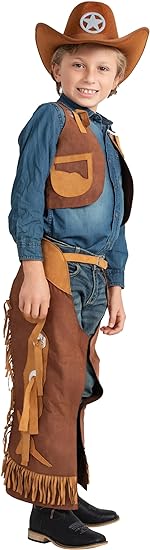 - Includes brown vest and matching brown chaps