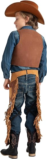 Kids Brown Cowboy Cowgirl Chaps and Vest