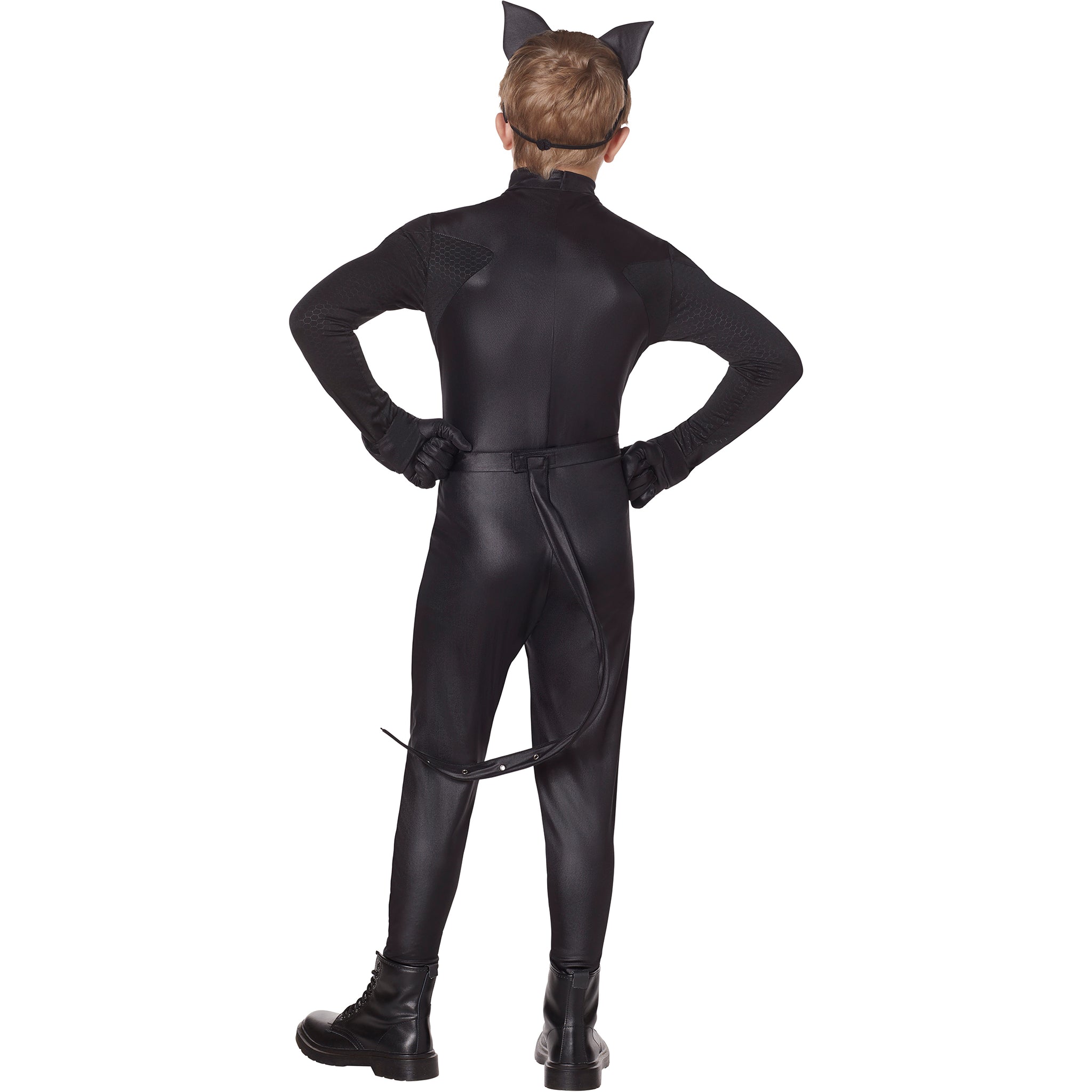 - Includes a black long sleeve jumpsuit, black gloves, a black belt with the tail attached, an eye mask, and the cat ears headpiece