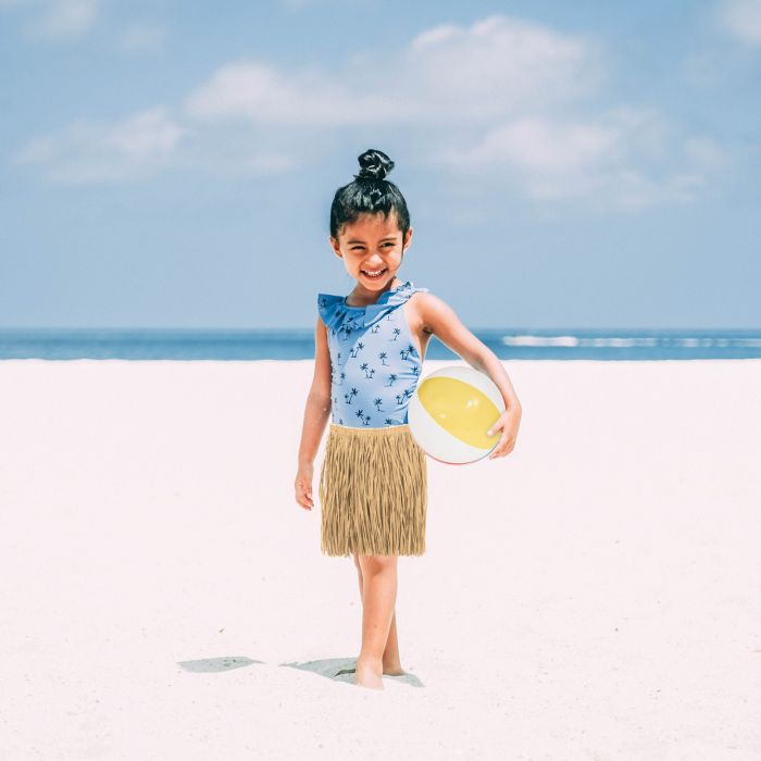 Perfect for group costumes or themed parties, it pairs perfectly with coconut tops, flower leis, and a whole crew of mini islanders, pineapples, or even dancing palm trees. Whether it’s a school play, a summer party, or a Halloween costume, this skirt adds a breezy, beachy flair to any look.