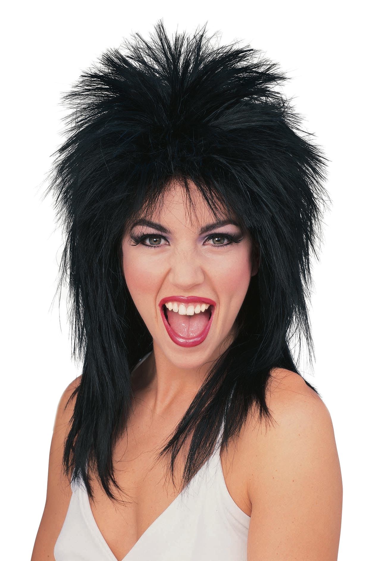 Superstar Wig - long, straightened 80's rocker styled wig with full, feathered top; available in red, blue, black, purple and brown. Great for men or women!