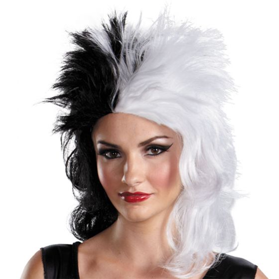 - Includes black dress, plush stole, a pair of long, red gloves, and black and white Cruella wig